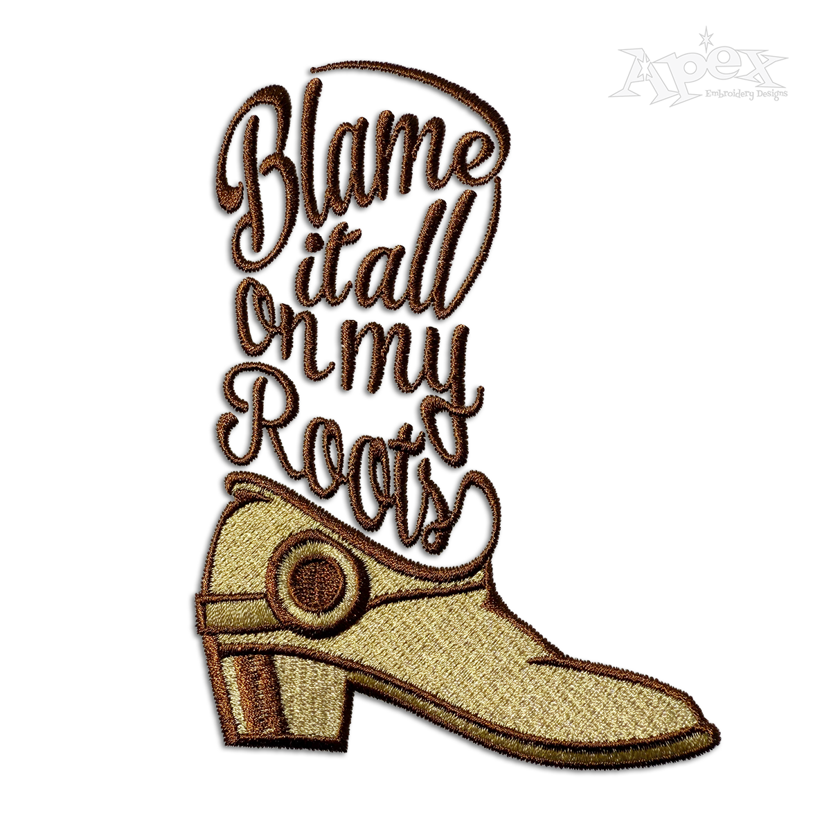 Blame It All on My Roots Machine Embroidery Design. Fun Garth Brooks Song Lyics Boot Shape Word Art Digitized Sewing Pattern Download File