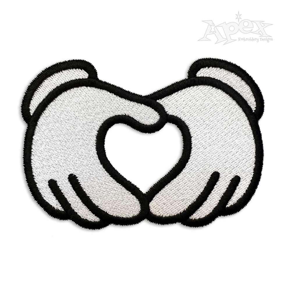 Cartoon Glove Hands Machine Embroidery Design Love Hand Making Heart Symbol Sewing Pattern File Download Valentine Day Mouse Idea