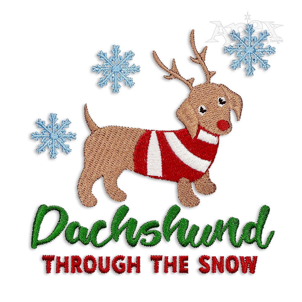 Dachshund Through The Snow Christmas Dog Machine Embroidery Designs. Dashing Song Quote.