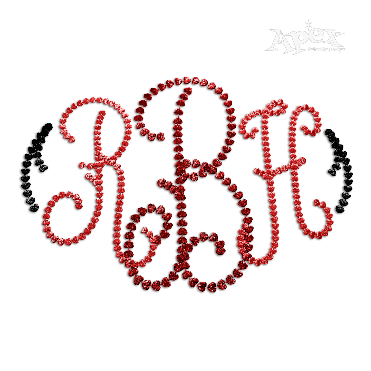 Mia Dotty Heart Monogram Embroidery Fonts Custom Alphabet Letters Personalized 3 Letter Initials Best Gift Idea for Valentines Day Wedding Monogramming Lettering