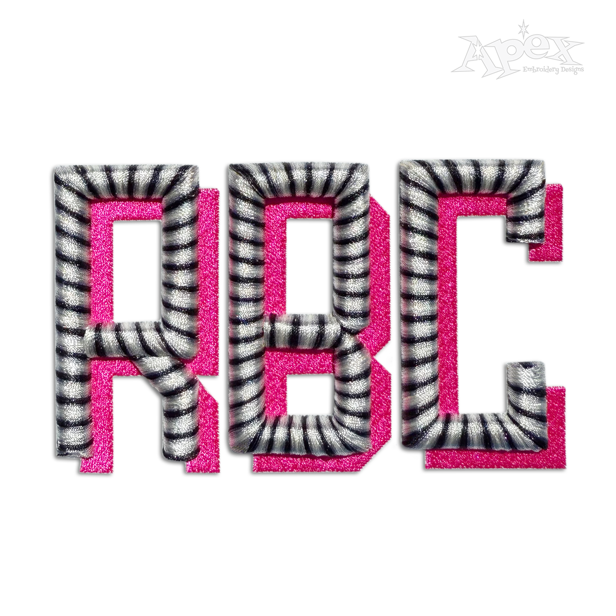 Modern Block Stacked Shadow 3D Puff 2-Color Puffy Machine Embroidery Font.
