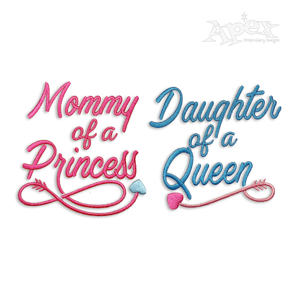 Mommy of a Princess - Daughter of a Queen Embroidery Instant download. You will receive one single zip file that will include all sizes.