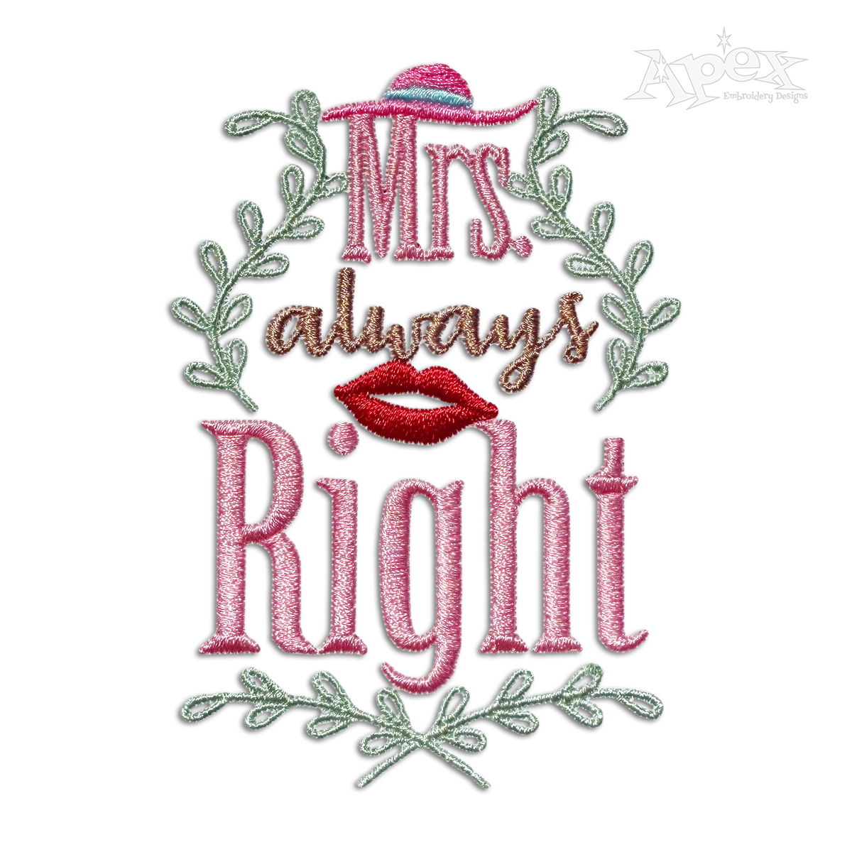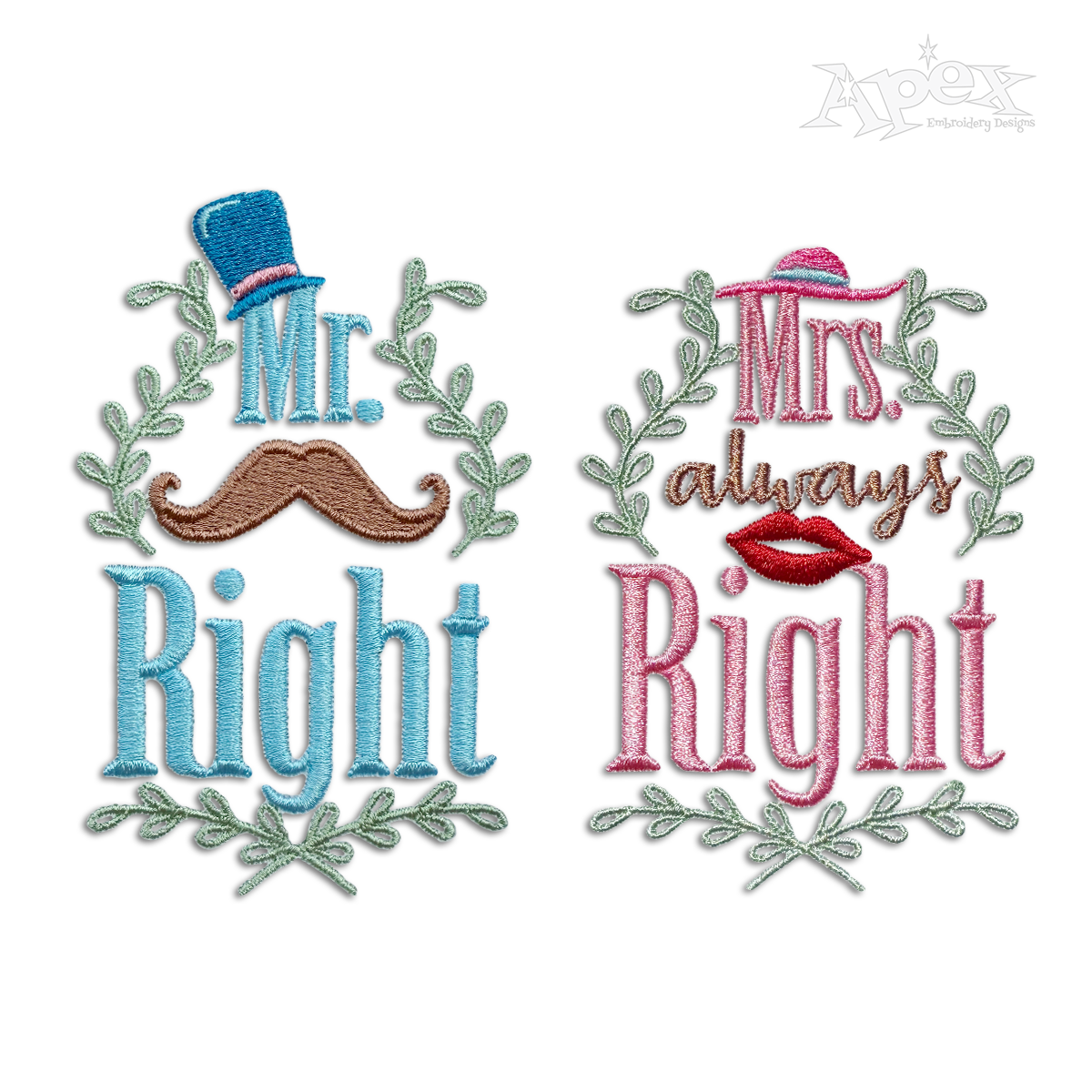 Mr. Right and Mrs. Always Right Embroidery Design
