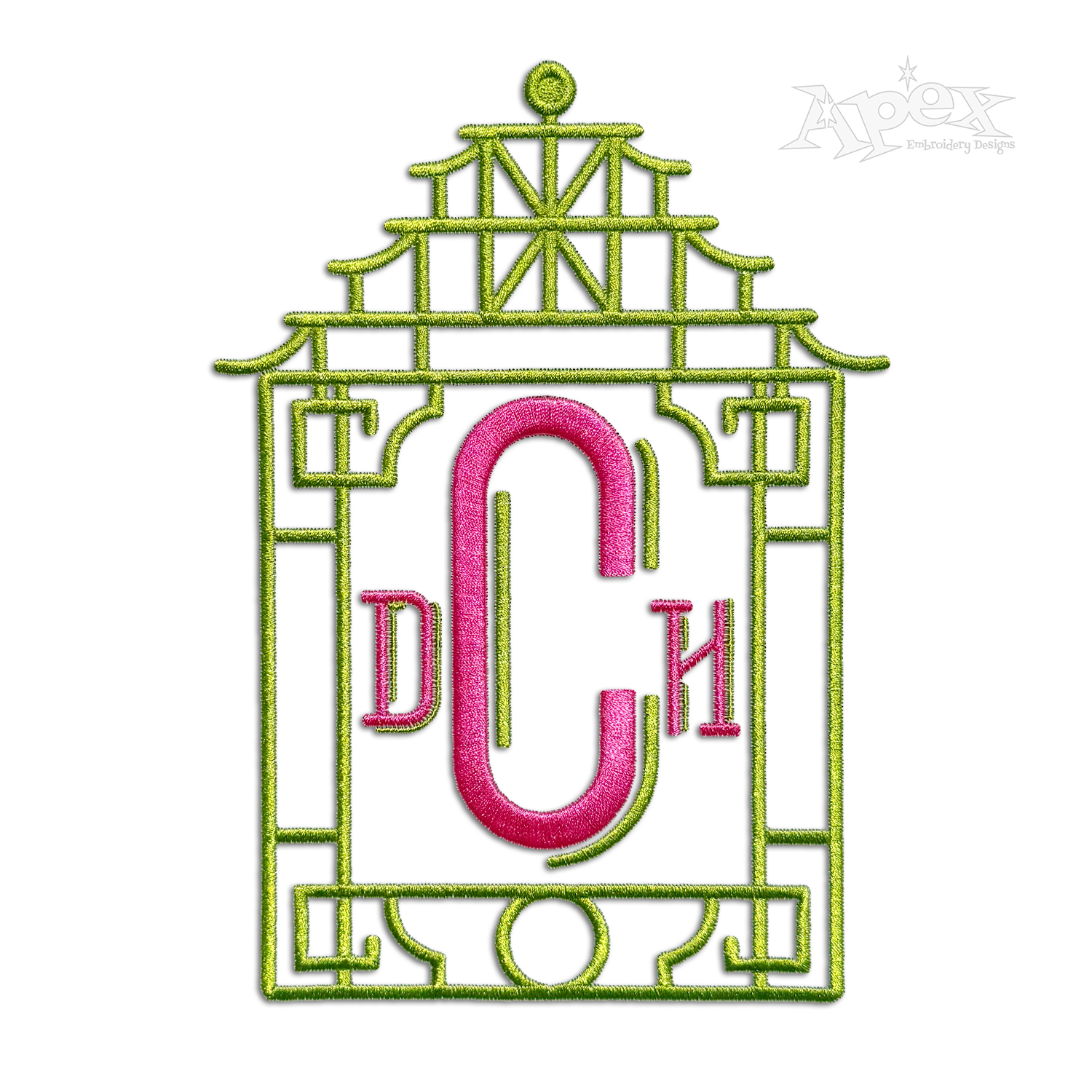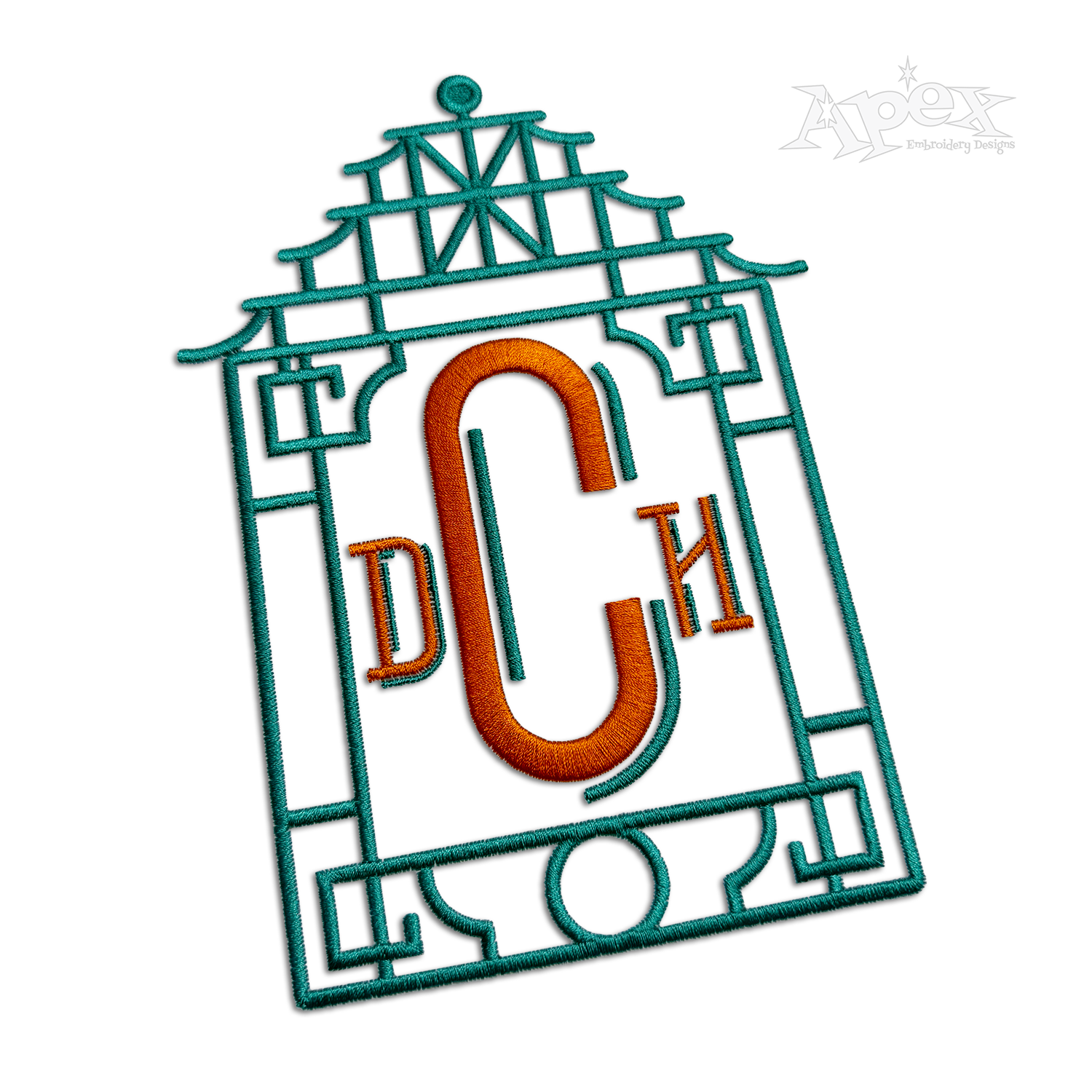 Pagoda Tall Frame Embroidery Design Machine Embroidery Frames Designs - Chinoiserie Antique Eastern Asian Chic Decorative Theme Digitized Sewing Pattern Instant Download Art Files