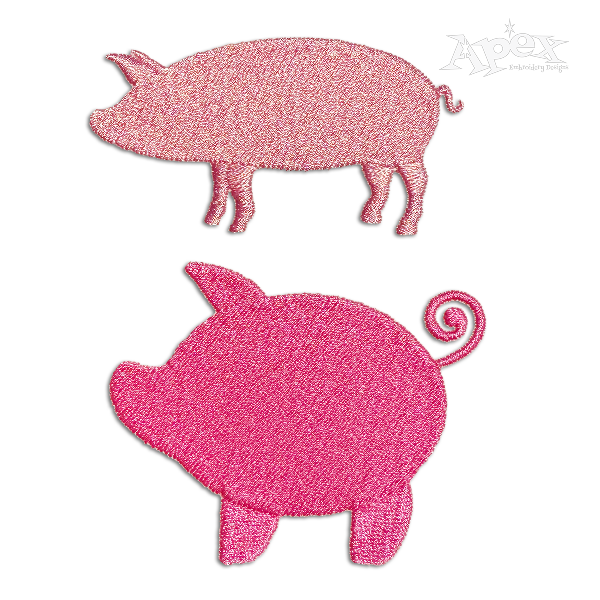 Farm Animal Pig Silhouette Machine Embroidery Designs.