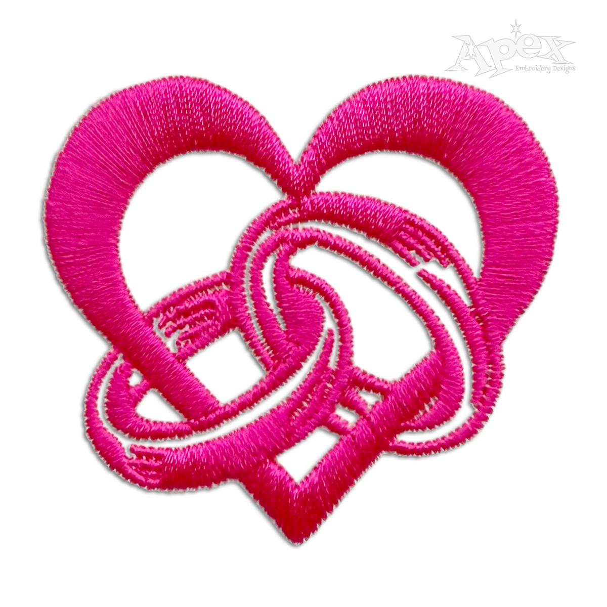 Wedding Couple Rings in Heart Shaped Machine Embroidery Design. Bride & Groom Love Sewing Pattern File Art Logo Newlyweds Just Married