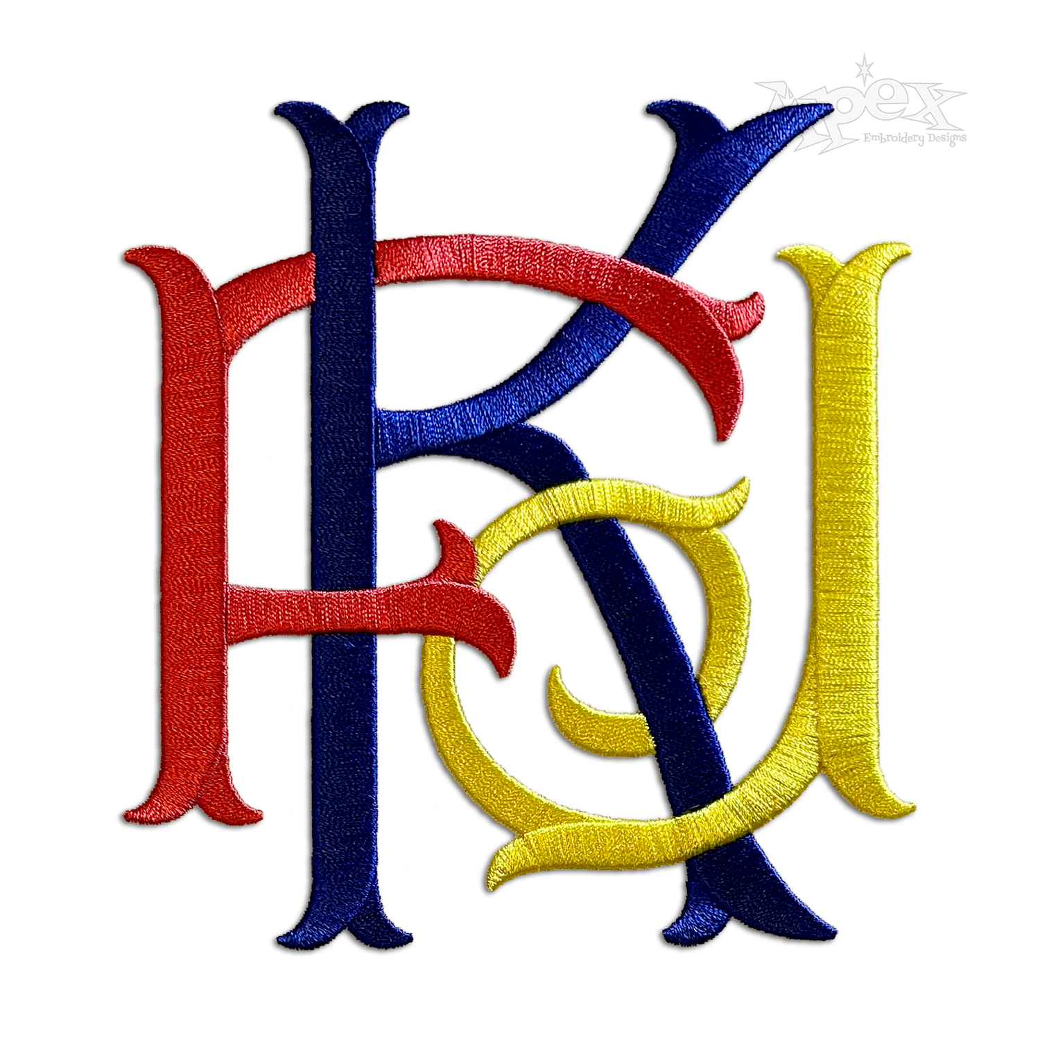 3-letter Sassafras Customized 3 Initials Intertwined Interlocking Monogram Machine Embroidery