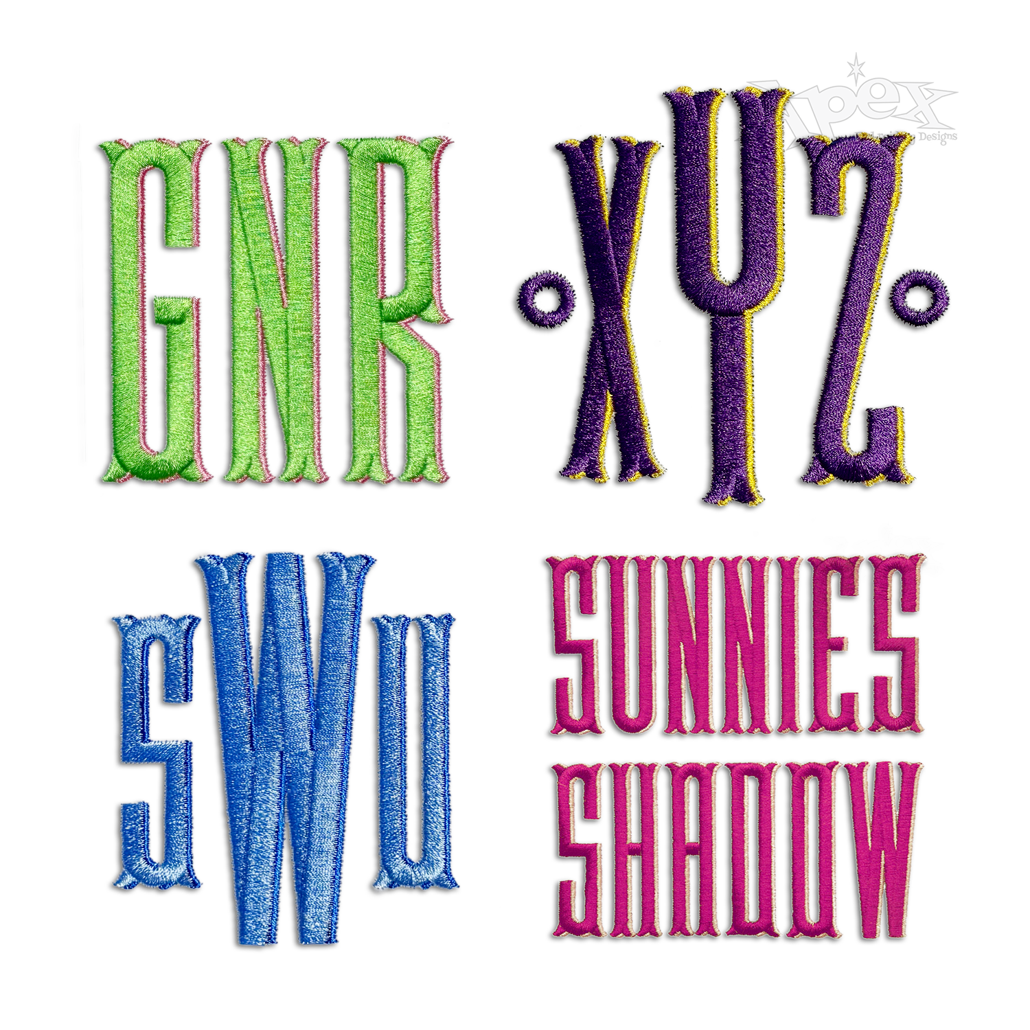 Sunnies Shadow Machine Embroidery Fonts. Two 2-Color Alphabet Letters