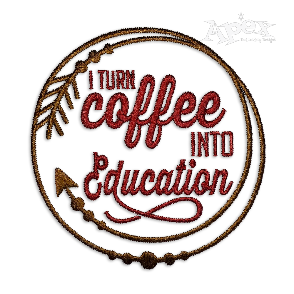I Turn Coffee into Education Machine Embroidery Instant download. You will receive one single zip file that will include all sizes.