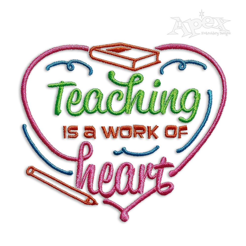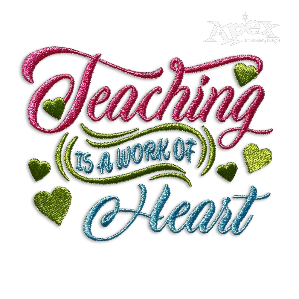 Teaching is A Work of Heart Embroidery Instant download. You will receive one single zip file that will include all sizes.